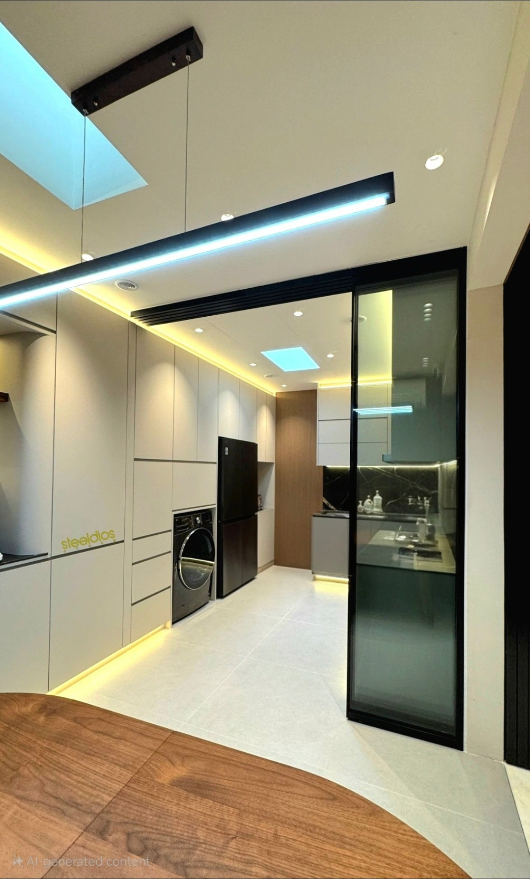 Meanwhile, the bifold Doors fold neatly away, offering a wide opening for seamless space transitions.