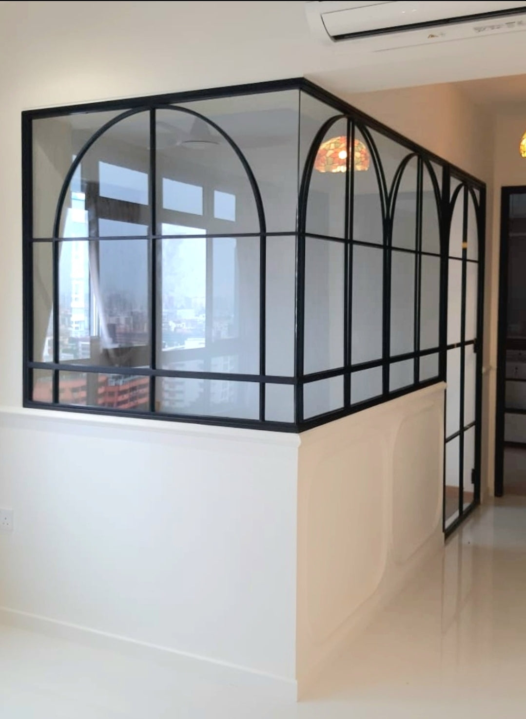 Arc design fixed window panel + swing door