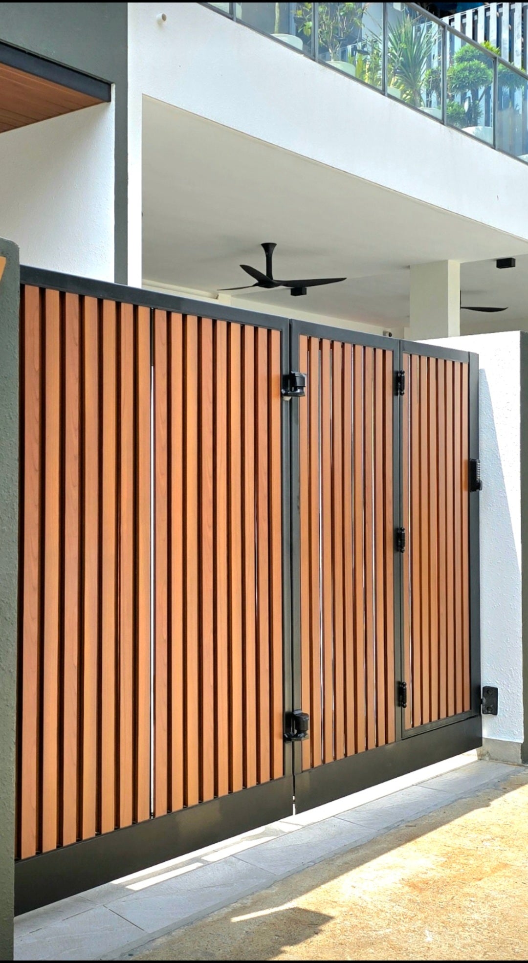 Mild Steel Driveway Gate 3 - Bi Fold Aluminium Wood Design (Inclusive of Outdoor PU Paint) (Gate + Bi-fold motor system set)